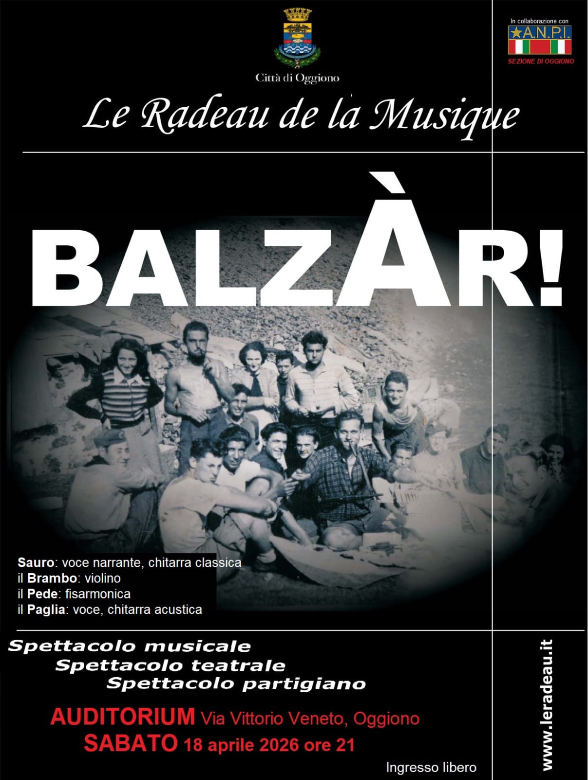 sab 18/04: BALZAR - Oggiono (Lc), h21. Auditorium, via Vittorio Veneto INFORMAZIONI: locandina